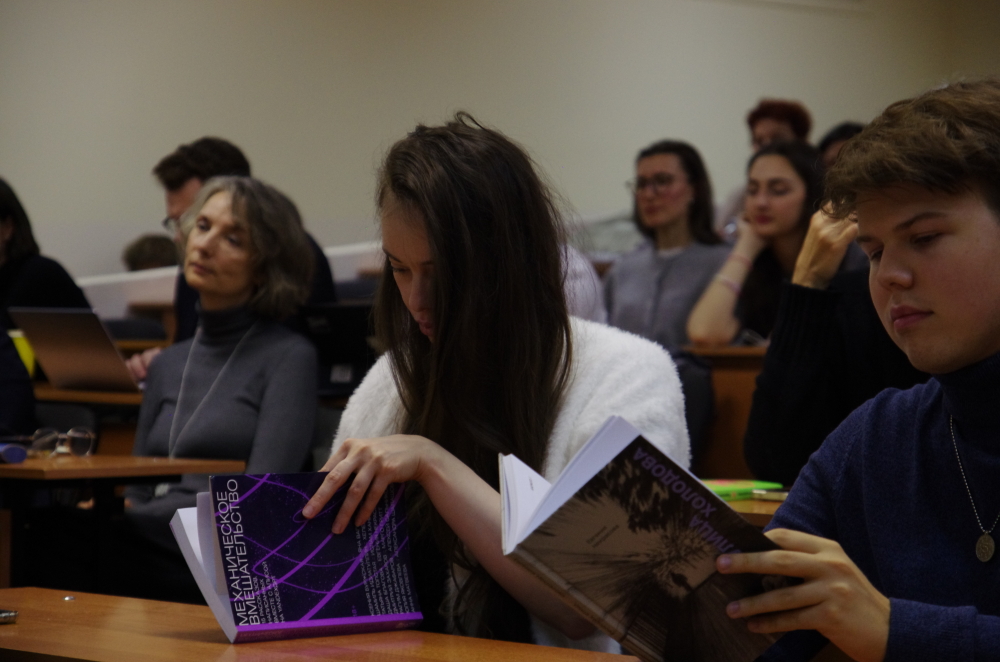 Модератор встречи, писательница Майя Александровна Кучерская, спросила у Евгении, насколько близка магическая проза широкому читателю — в том числе прототипам героев «Адвокатки»: